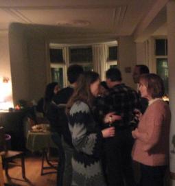 みなさま こんにちわん。12月最初の週末だった 6日、7日。われわれは、お招ばれされたり、お招びしたり、、といかにも「宴会シーズンの12月やな」という 二日間を過ごしました。土曜日は、日本語の生徒さんのおうちのパーティに行ってきました。。新居を購入されて間もないこともあり、家の中はまだ改装が終わっていないなか、土足でどやどやとお邪魔しました。入り口は、なんていいましょうか、「廃墟」のような荒れ模様で、 外から中を覗いたときは、「こ、ここで、いいのだろーか??」と 一瞬 激しくウロタエタのですが、中に入ってやれやれ。リビング等は、ほぼ改装も完了しておりましたー。(いやはや)さて、このパーティ。題して「アフリカンな夜」(=たぶん)。アフリカのスパイスを使ったお料理なんかも登場し、食べたり飲んだり。宴(エン)たけなわのころになると、、おもむろに、「アフリカンな夜」が始まりました。トンゲ ♪ トンガ ♪トトンガ トンガ ♪写真が暗くて申し訳ないのですが、見えますか?太鼓ですよ。太鼓。トットコ トン ゲ ♪トンガゴンガ ♪ トンガゴンガ ♪ という乾いた太鼓の音が響いてー。しかもこれ、、普通の家のなかでやっているものだから、音がものごっつい。腹の底に トンガ ゴンガ ♪と 響くのなんのって。けど、そこはそれ。「自然の音」だから、耳をおおいたくなるような <音ではない> のですね。むしろ、心地いいわけで。良かったなー。 良かったわー。太鼓のリズムを聞いているうちに、楽しくなってしまい、アフリカマラカス(=たぶん) を 手にとって、腰をフリフリ 参加してしまいました。...........腰痛が治っていて、良かったわ~。としみじみ。(そこに行く?)ふと見ると息子の視線。 じーーーーーーーーー。「ママ。参加するなよー。恥ずかしいやんか、、。」と 言われる始末でござい。ふーーーんだ。あたしも、習おうっかなあ。 アフリカ太鼓。トンガ トンゲ ♪ トトンガ トンゲ ♪ のリズムが頭をグルグル。人気ブログランキングへ おひとつ、ありがとうございます。トトンガ トンゲ ♪ っと。
