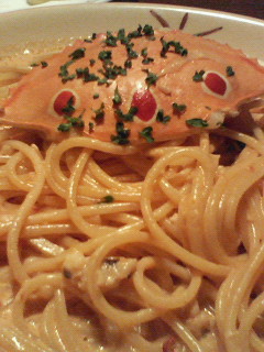 帰りにレストランに寄って渡り蟹のパスタを食べましたぺろり