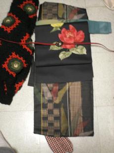 今年、最後の和裁日です。おまけにクリスマスなので、はりきって着物で行きました。銘仙着物薔薇?名古屋帯ヒイラギの半襟・白の赤輪帯揚げ・赤三分紐・モノトーン薔薇帯留め・緑の足袋赤・緑のポンセチアカラーでクリスマスの雰囲気です♪「若い人?が着物を着ているといいわぁ…」と和裁先生のお言葉嬉しいな♪胸が豊満なので?いつも、襟元がパコッと浮きます。和装ブラしていますが、なぜ?豊満でも、タオル補正がいるのかしら?まぁ…後は着慣れろって事で、これからも、着物で和裁を決意しました。振袖長襦袢を年内に済ませたかったのですが、袖付け残し、終了。又、来年1回して、帯仕立にかかります。帯仕立はやく、とりかかりたいです。ワクワク♪初チャレンジ♪この銘仙は古く、袖口がスレスレなのです。(なんせ、¥1万のお古)袖口のみ、なので、そこだけ補強しなくては…お正月用の半襟つけ。長襦袢の宿題。着物メンテ。着付けも時間がかかりますが、準備にどれほどの時間がかかるものか・・・それでも着たいと思うのは何故かしら?自分で撮影・以外に難しいわ♪