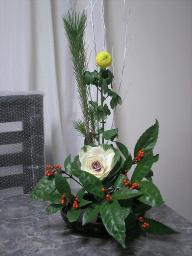お正月の準備を着々と進めています。昼から、近くのスーパーへ買い出しに・・・すごい人です。スーパー入り口で、お花を買いました。セットものは¥3000するので諦めて、バケツの中の¥700お安いので^^;そうだ♪生け花してみよう初チャレンジ剱山を¥100均一ダイソーで購入。花器は、カレー皿でいいやぁ~どうでしょう?菊の位置が、変ですね^^;どこに持ってくるべき?まぁ・いっかーお正月の半襟です。これから、付けます。お正月らしい模様でしょう?正月気分盛り上がって来ます。来年から、着物で和裁を決意!先週、着物のたもとが邪魔だったのでこんなものを、購入しました。オークションで¥1780ニュータスキ(ラバー付きで、生地を傷めないそうです)ピンクのとんぼ玉が可愛いでしょう?ゴム紐を帯の上にかけるか、お太鼓の中を通してたもとを留め、固定する。コンパクトでファッション性にも優れた便利な品です。首にかけて、ハンカチを留め、エプロンとして使用してもいいですね?きものやさんにもありました。重宝しそうです。タスキを使うほど、着物を着ようと自分に言い聞かせているのです^^;お正月のお料理はほとんど、スーパーの出来合いのもので済ませるようになって来ました。御重につめるだけ・・・でも、一品は作ります。今年は、数年ぶりに、黒豆を煮ています。今回は、電気ポットで煮ています^^;今の所、良い感じ♪おおちゃく・大雑把・お気楽・おおらか ほんとO型(血液型)の性格しているわー