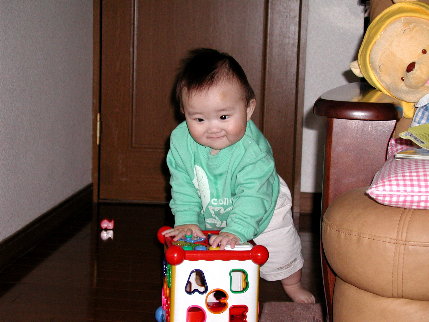 この頃つかまり立ちするようになった我が子☆おもちゃにつかまって立ってるとこを激写^^