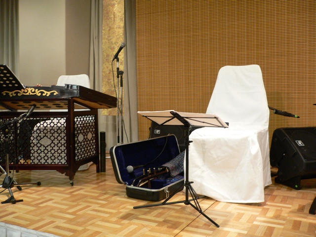 昨日は発表会のリハーサルでした。予定時刻の2時間前、カラオケBOXにて皆で自主練しました。学院は普段見慣れない方々(もちろん先輩方ですね)が大勢いていつもの雰囲気と違うなぁと感じつつも、少し緊張気味でした。リハーサル室は中央にパンファン先生、右側にストップウオッチでタイムチェックのパンシン先生がいらっしゃり楽器を演奏してくださるプロの方々等、最後の練習でパンシン先生が仰った中国曲、「優しくやわらかくね」と言う言葉を思い出し、しばし演奏いざ、演奏が始まり身近で聴く揚琴のなんと音色の美しいこと・・。今回この曲は私が二部合奏にするため下のパートを作ったり(パンファン先生に色々指摘を受けそれなりに苦しみながら必死で修正しながらOK頂いたこともあり、)また、昨年の今頃はまだ二胡さえ弾いたこともなく音楽を聴くだけだった私がこうして仲間たちと一緒に二胡を演奏出来るまでになったこと、など色々な思いが頭の中をめぐり終わったあとは、感動して少しウルウルしてしまいました。年とると涙もろくなるって実感(笑)合同合奏は3グループで当日はこの倍の人数で弾くのかと思いながらも、お互い弓がぶつからない様に少しずつイスを動かしながらスタンバイ。迫力あって良かったです。パンファン先生が上下パートに分けるとき聴きなれた日本語ではなく「イー・アール・サン・スー・ウー・リュウー・・・・・。」と数えていました。譜面台の数の都合で自分の譜面で弾けなくて結構アセリました。人の譜面見て弾くってたいへ~~~んもっと弾き込むか暗譜しないと、えらいことになりそうです。あと2週間後だ リハーサルとはいえ私には貴重な体験でした。