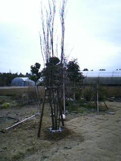 前々から庭に大きな木が欲しいなぁぁ・・と思ってました。去年秋に玄関アプローチに植えた”姫シャラ””やまぼうし”を買った時、お店の方にお願いしておいた『ケヤキ』が入ったと連絡があり、早速お店に行ってきました。『ケヤキ』にも色々種類があるらしく、公園でよく見かけるものだとすごく広がってしまうようですが、『家用』ということで、『むさし』という種類を探してくれてました。あまり広がらず、スラーっとした『ケヤキ』でした。昨日、植え込みに来てくれて早速庭の真ん中に植えてもらいました。『ムサシ』ってなんだか丈夫そうな名前・・・ 庭がようやくおさまってきたかな???って。これから『ムサシ』も大きくなって・・暑い日なんかはみんなで木陰に涼むんだろうなぁぁ・・。と、夏が待ちどうしいですっ
