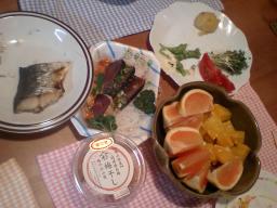 花粉症でダウンした私・・・隣棟に住むおばあちゃん(パパのお母さん)が夕食を作ってくれました。昨日は「すき焼き」。写真は、体調が悪くってとれませんでした。今日は・・・ 焼き魚カツオのたたきニンジンスープ(写ってなかった・・)新じゃがのバターソテースプラウト・トマト・スナックえんどうフルーツ(今日唯一支度した果物)梅干(おばあちゃんからもらったのですが、すごく美味しい) ありがとうございます。ホントに助かりました。子供たちも喜んで食べました。 明日からがんばります!