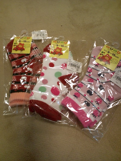 こんにちは!!ついでにダイエーで靴下買いました。81円です。なぜ赤ちゃんなのに冷え性なのだ・・
