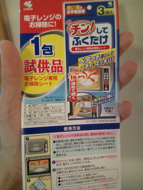 こんにちは今日は朝からこんなものを試してみました!!レンジで1分チンして拭く。汚れ綺麗に落ちました!!!が、1枚がちょっと小さすぎる((+_+))もっと大判だったらよかったなぁ。