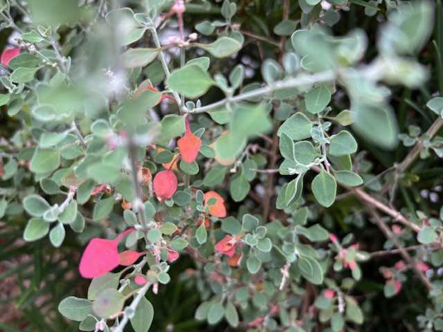 少し紅葉 ホワイトソルトブッシュ、ラゴディア・ハスタータ 気温がぐんと下が…