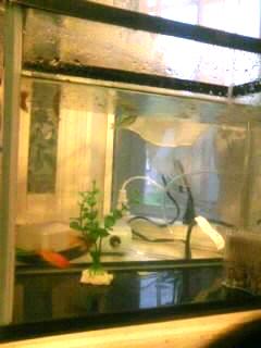 日曜日にお祭りがあり、そこで金魚すくいをやったBABIES一匹も取れず的屋のお兄ちゃんに3匹づつ入れてもらったすでに2匹がお亡くなりに・・・2匹も弱ってるが、1匹主のようなヤツが【タラオ】と名づけられた主は縦横無尽に水槽を我が物顔で占領してる