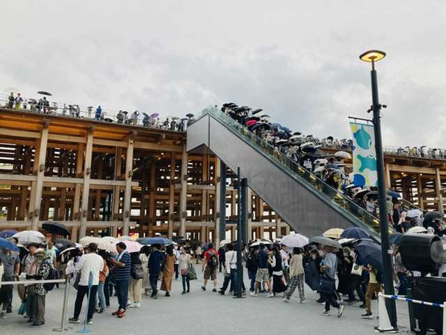 大屋根リングの上にまで行列が出来て…