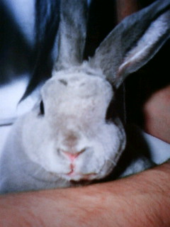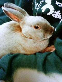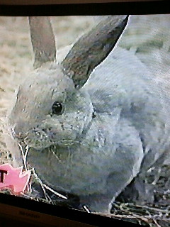 こんばんは、路字山 吟の妻です。我が家のうさぎ「園」については、昨日夫が日記に書いたとおりです。私が「ああもう駄目なんだな」と感じてから園が息を引き取るまでの約30分間。短い時間ではありましたが、そっと背中を撫でながら静かに見守ってやることができてよかったです。もはや食べものも飲みものも受け付けないという危ない状態なのに、まだ何か食べたそうにしていた園。最後にもうひと口だけ、おいしいもの食べさせてやりたかったな・・・そんなわけで、我が家の永遠のアイドル「園」。これから数回にわたって、彼女の写真をいっぱい載せていこうと思っています。怒涛の更新・・・というのは無理かもしれませんが。ピンボケ・ブレ・ブサイク顔などもあえて掲載しちゃいます。園のいろいろな表情を楽しんでいただけたら幸いですでは早速いきますか~本日の写真は・・・園が我が家に来る前、たまたまテレビに映る機会があって、これはその時の映像を写メしたもの(ちょっと画像が良くないけど)。まだまだ赤ちゃんだね~かわいいな~