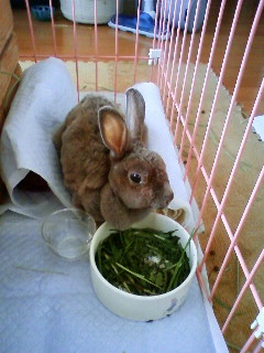 去る6月6日朝8時20分頃、我が家の愛兎「園(その)」が亡くなった。9歳と約2カ月。うさぎとしては長寿であり大往生であったかもしれない。悲しく、寂しく、残念な気持ちでいっぱいである。ここひと月ばかりで、園の身体は急速に衰えていった。明らかに体力は落ち、身体は痩せ、6月に入ってからは四肢に力が入らず歩く(跳ねる)ことはおろか、立ち上がることさえできなくなっていた。だから俺もかみさんもお互い口に出してこそ言わなかったが、園とのお別れがそう遠くないことは判っていた。写真は亡くなる3日前、6月3日の園の姿である。すっかり寝たきりになっているが、目だけは生き生きとしていて食欲も旺盛であった。首から上を一生懸命動かし、時にはひと休みしながらフードや牧草、おやつにありついていた。自力で給水ボトルから水が飲めなくなってからは、シリンジで直接水を飲ませていたがゴクゴク飲みほしていた。残念ながら俺は仕事で園とのお別れに立ち会えなかったが、かみさんの話では息をひきとる寸前まで何かを食べようと必死に口を動かしていたらしい。園の生きることへの執着心というべきものは最後まで衰えなかった。ここ数カ月俺達は園がいかに楽に余生を過ごせるかを考え、出来る限り園と一緒にいる時間を作ることに努めてきた。体力の衰えた園を連れて信頼のおける動物病院まで通わせるのは園に大きな負担がかかってしまう。だから、最後は自宅で温灸やマッサージなど2人でできうる限りの看護を施した。空しくも、今日お骨になった園を引きとりに行った。小さかった園がさらに小さくなって帰って来たよ。2000年7月18日。生後約3カ月で我が家に連れてきた園であったが、約9年間というもの俺達の生活をいっそう楽しいものにしてくれた。ここで園とのエピソードを書き始めたらきりがないよ。仕事を終え帰宅し、まず最初に園の部屋へ行きケージの扉を開け園を遊ばせるのが日課となっていたから、今でもついつい園のいた部屋に目が行ってしまうのだ。大好きだったかみさんに見守られて逝ったのは唯一の救いだな。「四の五の言う前にまずは食うもん食っときましょう!」園はいつもそう言っていた気がするぞ。とにかく、楽しかった9年間。ありがとうございました。お世話になりました。安らかにお眠りください。いつかまた会えるかな?また会える日が来るまで待っててくれるかな?それまでゆっくり休んでいてください。さようなら。