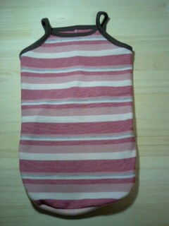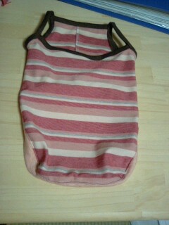 ロッキーとロビンのキャミ、試作品2号完成ですパパが一人で子供たちのお風呂と寝かしつけをしてくれたので、やっぱり今日もミシンやり始めると止まりません今日の完成品おとといの1号試作品とそんなに変わらないのですが襟ぐりを少し縮めて、首近くまで身頃がいくように背中部分を長くしましたダックス人形君、試着中この人形は足が曲がらないのと胸がかなり張っているので、キツキツでした失敗かなまた手直しかなと落ち込みながらもロッキーロビンに着せてみる事に・・・ロッキー試着中ロビン試着中うちの子たちはOKでしたロッキーとロビン、体重もそんなに変わらないのでもうひとつ、同じ物を作ったらいけそうです完成品にはタグもつけてあげようと思ってます今回の改善点は、身頃の丈の他に肩紐部分の長さです身頃の背中側とお腹側の淵にニットバイアスを伸ばしながら縫い付けて袖ぐりの部分は肩部分と合わせた長さを出して、あらかじめバイアスを輪に縫っておいて、バイアスを少し引いて伸ばしながら脇に縫い付けていきましたショップで売っているような可愛い服にはまだまだほど遠いのですが、これから失敗を繰り返しながら、いろんなデザインの服を作って着せてあげたいなぁと思いますもう楽しくなっちゃって縫い縫いが止まりません明日はもう1枚ワンコキャミを縫ってまたみいちゃんのTシャツとスカートを縫いたいと思ってます時間があればゆうくんにモンキーパンツをあと数枚縫いたいのですが、明日はとのこと・・・退屈しちゃった子供たちが縫い縫いさせてくれるかどうか・・・・・・・・
