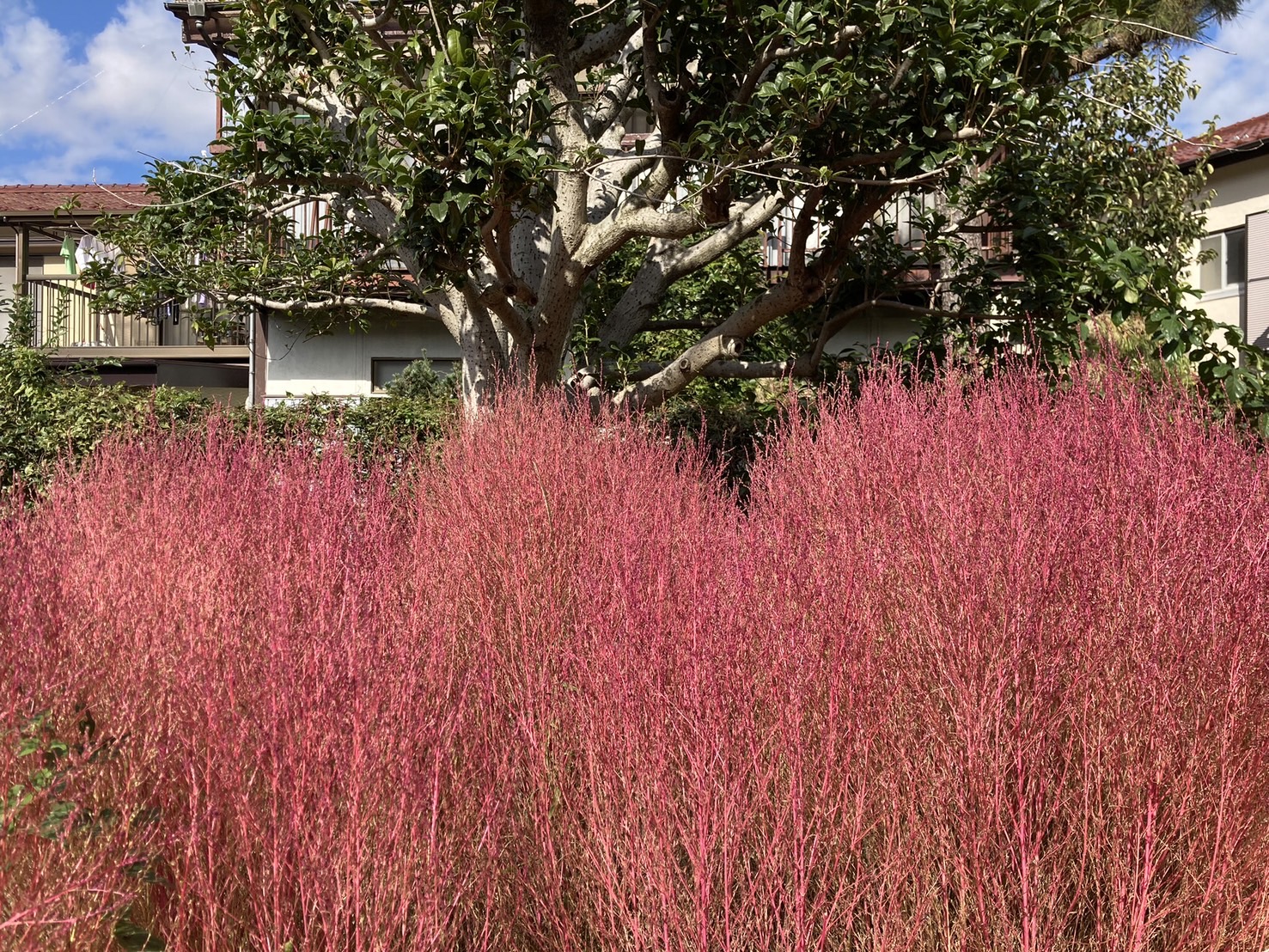 11月上旬。夏(前の投稿)と同じ角度で撮れなかったのは、工事が始まってしまったから。色づきかけのコキアもかなり掘り返されて見られなくなってしまいました。んーもったいない。