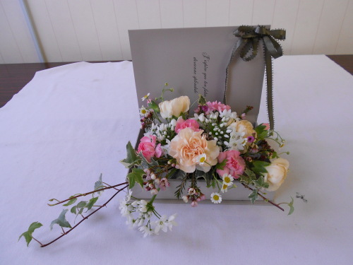 おひさしぶりです。ここ最近の書き出しは、いつもこれですねえっと……前回の続き公民館の文化祭は、天気も良くお陰様で盛況のうちに閉会しました。私達も数点出品しましたが、去年より多くの来場者にご覧いただいて花たちも喜んでいるようでした。写真は後日載せますね。来週の週末は、あるイベントでクリスマスリース作りのお手伝いをさせていただきます。色々な方とご縁が繋がってリースのようなま~るい輪ができると素敵ですね。
