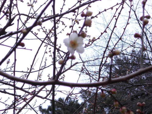 曇り空ではありましたが、今日はせっかくのお休みでしたので11月にママになった長女ミンミとちびけーくん(4か月)、それに先輩ママの二女チッチとトーマ(4歳)と一緒に 車で小一時間ほどにある公園に散歩(?)に行ってきました。お目当ては小動物園でしたが、私は広い公園内に植えられていた梅が気になって何枚か写してきました。なんだかボケてしまっていますね(^_^;)紅梅の方が満開に近かったのですが、白梅の方が好きなので。桜の名所でもあるのですが、桜の人口密度(?)が高くなったので間伐して、あちらこちらで切り株だけになった桜を見てきました。しばらくは淋しい感じになるかもしれませんが、新しい風を入れてあげないと淀んでしまいますから、これも必要なこと。風通しをよくすることは大切ですね。我が家も、きれいな空間を作らないと・・です。寒い中でも、カモ達は元気に泳いでいました。久しぶりにゆっくりした時間をいただきました。ウォーキング、なんておこがましくて言えませんがいつもよりは少し長く歩いて、心地いい疲れがあります。お風呂に入って、早めに休み また明日に備えることにいたします。たまには、こんな時間も良いものですね。