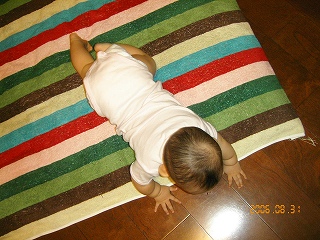 なにやら心がモヤモヤしてやり切れないくらいに苛立ち喉の奥に泣き出しそうなかたまりが詰まったまま・・家のこととうーたんのことで精一杯のここ数日でした今日、やっとモヤモヤが消え晴れやかな気持ちでPCに向かうことができました本当に嬉しいですわたしどうしちゃったんだろう?そうそう昨夜、うーたんがハイハイの姿勢からお座りしたんです♪本人も嬉しいらしく何度も何度もハイハイ→お座り→ハイハイ→お座り→ハイハイを繰り返しておりました(笑)つかまり立ちもできるようになり一日の成長の早さに驚いていますそして、更にすごいことがぁぁぁぁぁぁ生まれてこのかた昼寝らしい昼寝をしたことが無かったうーたんがなんと!!!今、寝ています(= ̄  ̄=) Zzzz・・・抱っこやおんぶではなくてちゃんとお布団の上でひとりで寝ているんです~~~~~~ママ嬉しくって楽天広場に来ちゃったよ♪