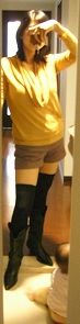 今日はちょっと暖かかったので?↓↓↓はい・・・すみません・・・30過ぎてます・・・太ももは出しちゃダメ・・・よね・・・せっかくこれを買ったからやってみたかったんです・・・このオフネック+ショートパンツ+ニーハイソックスああ・・そうそうブーツは買い替えがマストなんですよね・・今年はウエスタンじゃなくってジョッキーなんですってね・・秋を先取りしてウエスタン買ったわたしはどうすれば良いのでしょうか?ヒールは低目がいいなぁ~キッズ・ジョッキーブーツもあるんですね~いや・・キッズじゃなくって・・大人用大人用~~~~~~何か安めで履きやすいものないかしら~?
