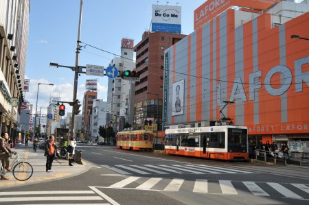 丸亀の中心部にはいると、松山のにぎやかさから一転、少々さびれた町並み。駅前なのにそうとうさびしい。