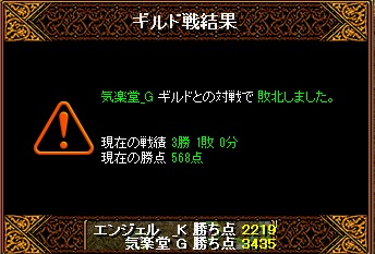 遅いけど攻城の様子をば 22時~SAKURAの攻めでしたよ~ すごくゴk・・集団ですね! 先生こうですか?わかりません>< 終始ゴk・・さん達が蹴ってましたね~ またシフさんだかに狙われてた気がします・・w 結果は~ 死んでる画面なんかじゃないんだからね><; 参加ありがとうございました^^ G「☆SAKURA☆」では、メンバー募集中です^^230制限Gv週1~2、P戦攻城戦有 気になった方は梅昆布茶先生までb 続いて 23時~ヴァルキリーで攻城守りでしたよ~ 開始前のSS撮れてなかったみたいですorz 集まりはWIZ2武道2ネク魔3槍2姫1かな? 今回もBIS無しですね!! 相手の悪魔さんと雨さん痛かったです; 水抵抗も大事だけど火抵抗も稼がないとと思った攻城戦でした みなさん参加ありがとうございました^^ G「ヴァルキリー」では攻城&P戦出れる全職募集中です^^ 気になった方は自分か、りこると まで耳お願いします^^ 続いて珍しくドロップのコーナーw はい!しょぼいですね! オフィシャルは防率48%HP+58付きでした^^ 狩りでモリ3デビューしたんですが、ここいいですね@@ おまけ~ GHバグ直して欲しいけどこういうネタ的なのがあると楽しいですよねw そろそろ剣士君どっかに留学させたいな~ またの!