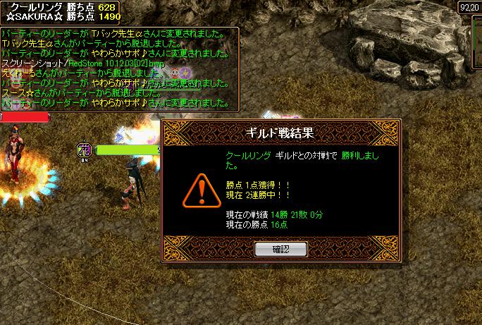 ども~(´@w@`) SS撮ったのに見当たらないから記事書けなかったのですが 少しSS消したら出てきましたw みなさんもSS撮りすぎ注意ですよb では本題、Gvだらけですがどぞ~ 金曜230制限でクールリング様場所:スバイン 2回目の対戦ですね^^ 集まりは 剣2弓1武道1ネク魔1DT1BIS2WIZ1 今回も闘士様に蹴られまくりでしたよ。。 場所も狭いので逃げにくいですね。。 倒したり倒されたりの追いかけっこだったのかな 障害物うまく使えるようにならないとなぁ クールリング様ありがとうございました! G「☆SAKURA☆」ではチャット好きな方、まったりGv週1~2、攻城参加してくれる方募集です! 続いて~ 土曜 初アリーナでしたよ~ 攻城の防衛と重なりましたが10分だけ出てその後Gvへ 攻城結果は防衛成功でした^^ 参加してくれた方ありがとうございました! G「ヴァルキリー」では攻城、P戦出てくれる方職問わず募集中です!! はい、宣伝はこのくらいにしてアリーナGvの続きどうぞ 集まりのSS撮り忘れたのはいつもの事(キリッ ネク魔sが良い感じに低下してくれてたので終始リードでした。 相変わらず心臓配分がまだまだです。。個人成績3LA0死 またマジックバッグキャンペーンしてくれないかな・・ 続いて 日曜 お相手BULK様場所:バヘル大河/2粒の涙 集まりは~ え~っと・・多いですねw 剣2?DT3?弓1槍1ネク魔2武道1WIZ2BIS4 お~2PTですね@@ 新しくDTs入ってくれたみたいですね ん~・・・ 完敗ですな 続いて月曜 410↓制限戦相手:AIzenWorld様場所:バヘル大河/2粒の涙 集まり 剣4弓1槍1ネク魔1鎌闘1WIZ2BIS2 相手に痛い剣士sいたんですがホントに痛かったですw 倒しつつ倒されつつでしたね 個人成績2LA1死 今回は、改良フルチャ2セット程持っていったのですが思ってた以上に良いですね 1回相手の痛い剣士sに倒されたのが悔しいです; おまけ! 誰ですかアリアンに刃油捨てたの・・ Gvだらけだったけど またの!