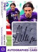 2BOX目から出てきたのは…、【2箱目】2013 J.LEAGUE OFFICIAL TRADING CARDS TEAM EDITION MEMORABILIAAUTHENTIC AUTOGRAPHED CARD#SG13 ミハエル・ミキッチ→2013 TEAM EDITION MEMORABILIA(まもなくページを作成します)ミキッチ選手のサインカードでした。(毎年必ず自引きしています)今年はマークが厳しく昨年ほどの活躍はできていませんが、局面局面では相変わらず格の違いを見せてくれています。彼が苦手の夏場を乗り切ってくれれば、連覇も見えてきます。→サイトマップ→三本の矢本館