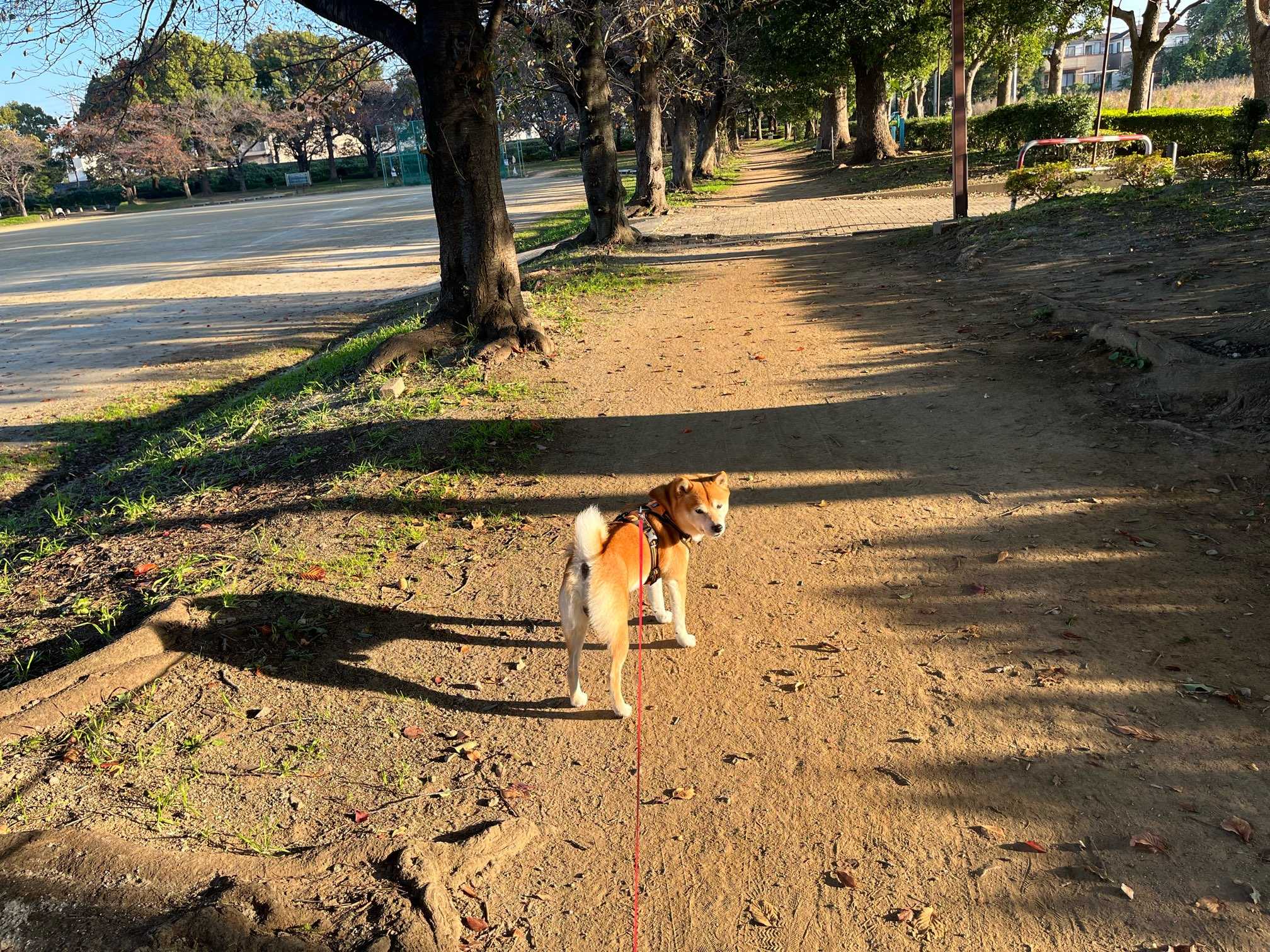 昨日9日のお出掛けの続きです。『恩智神社』でルビーとの初詣をした後は、久宝寺緑地に向かいました。久宝寺緑地はとっても広いのですが、この日は風の広場の近くの駐車場に車を停め花の広場に到着~。神社の境内で震えていたルビーなので洋服を着せたら・・・ズーーーーン・・・・いきなりテンションめっちゃ低いルビー。そのまま壁や木のトコロに連れて行き、クンクンさせてテンションUPを期待したんだけどダメで・・・パパさんが、洋服脱がせてみたら?っていうので脱がせると・・・ブルブルっとしたら生き返ったルビー。グイグイリードを引っ張って歩く気マンマン花の広場を抜けて階段を上ると橋があり、向こうにも公園が続いています。中央広場に出ました。でもなんにもな~い。野球場の外回りをお散歩して戻ることに。動画でも撮ったので動くルビーを見てね。^^ね?楽しそうに歩いてるでしょ?花の広場に戻って記念撮影をと思ったら、大きな花壇の後ろ側は、ナナメになっていて足元が不安定。ポーズが決まらなくて残念ー。しばらくお散歩して、池に来たんだけど、池には小さな鳥さんがポツーーンといるだけ。おじさん達が釣りをしていましたが、何か釣れるのかな??ルビーはルンルンでお散歩してたけど、私は先日行った大泉緑地の方が楽しめたなぁ~。芝生広場もあったのに、行けば良かったかも。歩いてるとお腹空いちゃったね。そろそろカフェに行きますか~この後初めて行ったカフェでとっても嬉しい出会いがありました続きは後ほど。^^(今日はパパさん仕事なので私はヒマ!UPできるかな~)久宝寺緑地での様子をアルバムにまとめました。良かったら見てくださいね。^^久宝寺緑地 ← クリックしてね♪スライドショーでも見てね。^^