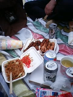 じいじばあばが気合で並んで焼きそばや焼き鳥をゲットしてくれましたo(^-^)o