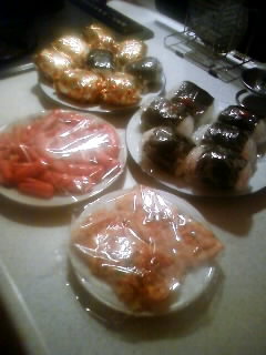 恐いので弁当はソーセージ&卵焼き&おにぎり作った時点でストップ。(息子はソーセージとおにぎりしか食べないし!)