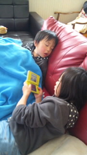 風邪気味の息子はお姉ちゃんのゲームを見ながら寝てしまいました(^w^)
