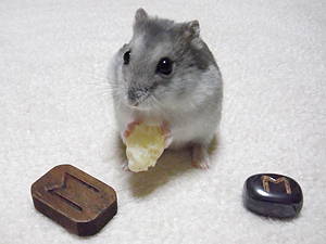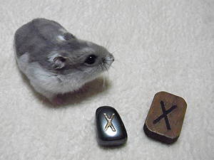 【ムーン君のささやき】2011年1月10日(月)~年1月16日(日)のサポートになるルーンは、Eho エオー でチュこのルーンが何を象徴しているか、これから僕がおみせするでチュようま うまうま うま エオーはうまうまを象徴していまチュよムーン君、エオーはウマウマじゃなくて、「馬」を象徴しているんでしょう?エォ~!!そうだったでチュか?僕、勘違いしていたでチュ【ムーン君の本音】瑠璃月姫のくだらないジョークに、僕を巻き込まないでほしいでチュよ。いやでチュね~~~ルーン エオーエオーは馬を象徴し、「変化」「移動」「動き」を表すルーン文字です。昔、馬は一番早く移動出来る手段でもあり、馬と人間の信頼関係があってこそより早く走れるということで、馬は人間の友達のような存在でもありました。エオーのルーンは、信頼やパートナーシップ・協力という意味を持ちます。今週は、何か新しい変化・新しい自分の発見などがあるかもしれません。動くことで物事が良い方向に変化していきますので、チームワークを大切にまわりはもちろん自分自身も信頼して前に進んでください。今週のルーンカードエオーのカード 1月2週目のカード左側のエオーのカードは、「信頼」「チームワーク」をイメージ化したイラストが描かれています。右側の1月2週目のカードのキーワードは「法律」と「規則」です。今週のカードからもみなさまが必要なメッセージを受け取ってくださると嬉しいです。もしかしたら、今はルーンからのメッセージが理解できなくても後になって「あぁ~こういうこと」と気づくこともあるかもしれません。「ムーン君のささやき」では、その週にみなさまをサポートしてくれるルーンのメッセージをお届けいたします。こちらでお伝えしている今週のルーンは、多くの方へのメッセージであることをご理解いただいた上で、ルーンと親しんでいただければ嬉しいです。毎週月曜日にハム&人間の月コンビで、ルーンからのメッセージをお届けいたします。来週も「ムーン君のささやき」をお楽しみに・・・【瑠璃月姫のひとりごと】北欧神話の中で馬というと、オーディンを乗せて走る8本の足を持つ駿馬「スレイプニル」が有名です。スレイプニルは死者の国(無意識の世界)へと魂を導き、そして新たな境地へといざなう役割を持っていました。先週のルーンが死と再生を表すユルでしたので、今週のルーンエオローからのメッセージにはなにか深い繋がりがあるように感じています。いつもありがとうございます。愛と光を込めて・・・ムーン&瑠璃月姫