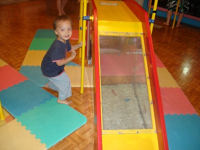 少し前ですが叔母と中華街に行ってきました。本当は八景島に行く予定だったのですが私が午前中違う叔母の仕事を手伝っていたので時間がなくなり中華街にある吉本水族館に行ってみることにここも実は行って見たいな~と思っていたところだったのですが・・・まぁ、一度行けばいいかな~って感じかもたしかに吉本だけあって、面白かったですけどね。駄洒落水族館みたいな感じですね。水槽の中にたこ焼きがあって、そこに本物のタコがいたり・・・魚のお笑いトークショーなんていうのもありましたもちろんテープが流れているのですが本当に魚がマイクに群がっている・・・(ま、餌がそこから出ているんだろうケド)一度行ってみるのはいいかもしれないですね。そして子供水族館。滑り台やらジャングルジムなんかがありますが滑り台の中?も水槽。ロッカーの中も水槽。とにかく魚も全部赤ちゃんの魚なんですね~。これがその滑り台。分かりますか?滑るところが透けてるのが・・・ここが水槽になってます。滑り台の下はトンネルになっていて一応周りは水槽ですがあんまり子供は興味ないみたい・・・これは何だったっけな~???たしか竜宮上・・・オチが何だったか???これもオチが何だったか???もっとすぐ分かる面白いのがあったのですが・・・何故か写真がない~~~~
