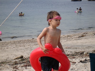 今日はお友達ファミリーと海でBBQ朝6時に友達がお迎えに来てくれてそのまま車で横須賀まで暑い、暑い、暑い日でしたが、子供も親もとっても楽しく過ごせました。そしてその後は温泉へ海の後の温泉はまた格段と気持ち良かったですね~今年初めての海~友達の旦那のゴーグルを奪った次男・・・長男~、おしり見えてるよ~~~~次男も海に出ようと浮き輪を抱え・・・さぁ、出航~~~後はお姉ちゃん、宜しく~遊んだ後は腹ごしらえこちらも腹ごしらえ長男が見つけた大きな貝(手に持ってるやつ)海に潜った長男・・・