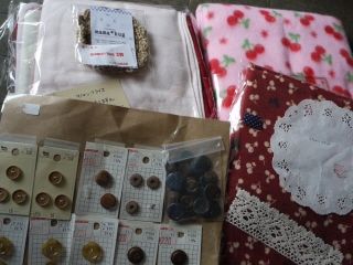 風邪をひいているにも関わらず、イベントに行ってきました。いや、、言い訳すると朝は調子良かったんですよ・・・w秋になって広島では毎週のようにどこかでハンドメイド関連のイベントが目白押し。最近は平日開催のものだけちょこっとしか行ってませんが、にこにこ商店街はそんな私の条件にピッタリなのでよく行っています。まずはお目当てのハギレ市にて、、、いつのまにかドッサリwこれだけ全部で1600円なり~~。 どれも安いのでやめられないんですよねw右側2種類はつい手にとってしまったサクランボ柄。右上がフリースと右下が起毛生地。(それぞれ1mほど)左上はピンク・赤系のスパンフライス・リブ生地のセット(5枚も入っています)左下がボタンのセットです。とにかく安さにウハウハです。そしてにこにこ商店街で有名なのがクジで景品ゲットですよね。過去2回ハズレばかりでしたが、今回初めて当たったのが「mama*hag」さんの3賞、毛糸で編んだモチーフでしたハッ!袋のままで写真とったので肝心のモチーフが写ってなかったですね><とってもキレイな編み目で見てて感心しちゃった1枚でしたよ^^mama*hagさんありがとうございました。そして最近ネックレスorペンダントが欲しかったので、見て歩いてたら目にとまったこちらを手元にお迎えすることにしました画像では色がキレイにとれていませんが、パープル系のネックレスです。本当はもっとキレイな色なのですが。。長さも調節できるし、うまく使ってあげたいなぁ帰宅して買った生地を見ていたらピンポーン。別でネットで注文していた生地も届いてさらにルンルンな私♪こちらは今年の娘のコート用のウール生地をメインにちょこちょこと。。。生地の山がますます高くなってるのでせっせと制作しないとねぇ~。でも今日は、、風邪を治すべくゆっくりめに過ごそうと思います応援よろしくお願いしまーす↓移転オープン、いよいよ明日です!私も行く予定です^^