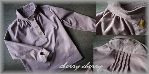 ここ2・3日かけて作っていたのがこれです 型紙:RickRack チュニックブラウス ブラウスバージョン 生地:check&stripe オリジナルフレンチコーデュロイ あずきミルク夏に半そでで作ったチュニックブラウスが気に入ったので冬はあったか素材の長袖で作りたかったんです。それで作ってみました。生地はシルバーウィークに神戸の実店舗で買ってきたコーデュロイ。このなんともいえない微妙な色が気に入って買ってきたんです今C&Sさんで予約販売しているフレンチコーデュロイと同じと思います。ピンクなようなパープルなような、まさにあずきミルクという色合いそのもので用尺を覚えてなくて2mだけ買ってきたら、チュニックには2.5m必要とのことでブラウス丈で作ったのですが、裁断してみたらチュニックも十分作れました(^^ゞまぁ、余った生地は娘のものでも作ってお揃いにしてもいいかも^^さすがC&Sさんの生地、色合いももちろん肌触りもよくって♪昨日着ていたら、娘がこの生地気持ちいい!ってくっついてきてスリスリしてくるほどでした(笑)この型紙は前身頃の襟のあたりにギャザーがよっていたり(画像右上)、後ろ姿もタックをよせてアクセントをつけていたりするところ(画像右下)がまた気に入っています。袖のカフスのあきが涙型なのもカワイイなぁって袖の長さは自分に合わせて少々短くしています。ブラウスの裾の長さは今回は型紙通りにしてみました。すると私にはちょっと長めなのですが、ちょうどお尻が半分くらい隠れる長さかなぁ。まぁ体系カバーにはピッタリよね旦那にいわせると「最近ぶかっとした服ばかりだよね」と不評なのですがwまぁ、これは布帛素材のかぶり型のブラウスなので、ぶかっとしていないと着れないもんなんだとちゃんと理由を説明しておきました (エッ?言い訳??)この型紙気に入っているので、今度はチェックなどの柄入りで作る予定です応援よろしくお願いしまーすお世話になっているfabric*BLUE*さんで来月イベントが開催されます^^ 詳しくはブログへ