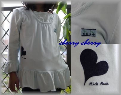 型紙:Candy Floss フリルカットソー サイズ130 生地:シンカーパイル(ベビーブルー) COSMO 細フライスボーダー昨日にひき続き、娘服です。まだほとんど作っていなかった型紙を使ってフリフリのカットソーを作ってみました。生地はハンパに余っていたタオル地ニットとボーダーフライスが同じ色だったので、その2種を組み合わせて使っています。ボーダー、わかりづらいですが、写真右上のさくらんぼがUPにしてある画像だと、袖などがボーダー柄になっているのがかろうじてわかるでしょうか?他にもフリル部分がボーダー、つまり、無地のタオルニットは前後の身頃のみということです。アクセントは胸元のさくらんぼ、、これは名札をつけるためにつけました。生地がどちらも非常に柔らかいので、名札をつけるとたぶん穴があくと思われるので、このテープの部分につけることで、生地の穴あきを防ぎます。そして何より、ハート柄のフロッキープリントですよね^^RickRackさんで購入したフロッキープリントをやっと使うことができましたアイロンで張り付けるのですが、市販服のような雰囲気になってくれて大満足あとは洗濯にどれだけ耐えられるか、ですが、こちらは昨日初めてきたのでこれから何度か着ながら実験ですね~~でも娘に着せてみたら、位置が思ったより横にきてしまって、もうちょっと正面よりにつければよかったなぁ~って まぁ、今からどうしようもないですけどねwそして袖と裾のフリルは紺色の巻きロックにして、アクセントはすべて紺色にして統一感を持たせました。娘は一目で気に入ってくれた様子^^早速昨日着て行きましたが、朝などはこれ1枚だとちょっと寒かったみたい(^^ゞサイズは130ですが、袖が今ジャストなので少々短めのようです。あと首元があいているので、朝などはちょっと寒かったというのもわかります。まぁこの時期は朝晩と昼との気温差が激しいのでしょうがない面もありますが。娘もハートが「売ってる服みたーい」って喜んでました^^反省点としては、首元の別布の部分がイマイチのフィット感だということ。ゴムを引っ張りながらぬいつける仕様なのですが、もっと縮めてもいいかも。もしくは、もっとちいさめに縫いつけなきゃかなぁ。せっかく買った型紙なので、アレンジ盤も含めてもうちょっと作ってあげようと思います^^というか、、今使わないとサイズ的にもう使えませんから><昨日、9月に学校で測った身長・体重を書いた保健カードを娘が持って帰ってきました。早速見ると、身長122cm、体重も25kgくらいに。。。周囲から身長が伸びた伸びたといわれてたけど、やっぱり本当に伸びてるわ4月から5カ月で4cm伸びてますから!!そりゃあ、スカートの丈も短くなるわね^_^;まぁ、あれだけ食べりゃぁ、大きくもなりますわww大きくなるのはいいのですが、サイズが大きくなると型紙がなくなる~~><娘が嫌がらない限りは手作り服でとは思ってますが、選べる型紙が段違いに少なくなるのでほんと困ります。これからは自分で型紙をアレンジして服のカタチを替えることも考えなきゃぁ!応援よろしくお願いしまーすお世話になっているfabric*BLUE*さんで来月イベントが開催されます^^ 詳しくはブログへ