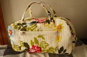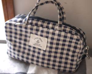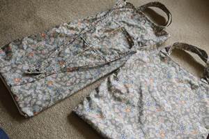 娘の卒業式用のジャケットは都合により今日から制作します。その前に作ったのがオーダーをうけたこちらです。タイトル通り、エプロンになる花袋です。花袋の縦と底の2辺がぐるりとファスナーになっていて、そのファスナーを開くとエプロンとして使えるもの。お花をいける時はエプロンとして使って、お稽古が終わったらファスナーを締めて花袋として使用します。オーダーしてくださった方はこのエプロンタイプがとても気にいっていて、長年愛用していたので使っていたものがだいぶ色あせしていました。買い換えたくてもなかなかエプロンタイプを見かけなくて買えなかったそうで。見せていただいたら私でも作れそうだったので、サイズを測って同じカタチで作りました^^ 生地:RickRack 撥水ナイロンタフタ フラワー グレー生地は手持ちの中から選んでいただいたのですが、年末にセールをしていたこちらの生地を選ばれました^^1m単位の生地代をいただいたので、余った生地でバッグを作っておまけにつけます。花袋自体がそんなに大きなタイプではないので、生地もたくさん余った分、バッグが大きくなりました。今回は底にマチがついたバッグです。