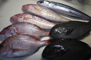 今日は毎月恒例の市場の市民感謝デーでした。過去の経験から、1月はお正月明けで人が若干少ないのは知っていましたが、一応早めに家を出て並んだのが大正解でした。っというのはシケのため、今日のトロ箱は限定100個しかなかったんです。月によってトロ箱の数が違うのは知っていましたが100個というのは、おそらく私が知っている中では1番少なかったのでは?列はそれなりに前だったのに、トロ箱はけっこうギリギリでした。朝早く並んでよかった~!! トロ箱 全部で1000円 今月の中身は トビウオ(大き目)1匹、イトヨリダイ2匹、タイ(小さ目)2匹、メジナ2匹 でした。その他は、タコ500円、エビ10匹500円 ←毎月定番で買ってますあとはサバ5匹300円 、シラス1パック100円、たらこマヨネーズ100円(賞味期限間近)を買ってきましたわ。そして1月はジャンケン大会のイベントがあります。無料で参加できるうえ、何かもらえるので時間までまた待ちました。なのにジャンケンで負けちゃいました私、市場のジャンケンイベは全敗なんです。。。あのおじさんと相性が悪いみたいで・・・(3戦3敗)負けた人は残念賞の韓国のり。。。。トホホジャンケンに自信がなかったので、家族を誘ったのに娘も旦那もついてきてくれずで。トロ箱ゲットのために1時間強ならんで、ジャンケン大会でさらに1時間弱並んで、、、今日は疲れました;;昼寝したあと夕方は魚と格闘です。今回はメジナ1匹を昆布ジメにしてみました。富山県ではよく食べるのですが、刺身の柵を昆布で巻いて寝かすと、刺身に昆布のうま味が移って身もしまっておいしいんです^^あとは明日は小さ目のタイ2匹でまた塩釜焼きにしようと思います^^今月も安くてウマウマを楽しみますわ(*^_^*)