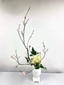 啓翁桜はまったく同じ枝で配材を替えていけてみました。