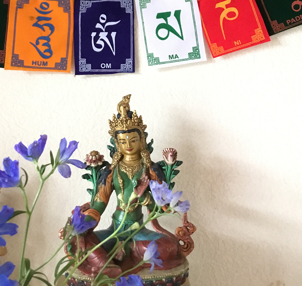 我が家の玄関には仏像が多数置いてある。知らない人が見たら「この家の人、宗教かぶれしててヤバい」と思うかもしれないが我が家は夫婦揃って無宗教である。特に妻なんて日曜日にエホバの信者さんが訪問してきて「目覚めよ」みたいな小冊子を渡されそうになると「どうせ読まずに捨てますから要りません」と言う程である。僕達夫婦は初詣すら行かない。町内の神社係になった時に仕方なく神社に行く程度だ。妻の父母のお墓があるお寺には夫婦揃って時々行くが僕の父母はお墓は作らずに早々に永代供養にした。そもそも宗派が何なのかも知らない。浄土宗までは分かるがナントカ派とかはサッパリ分からない。それなのにヒマラヤの標高の高い所にあるゴンパやストゥーパで仏像だとか神様像を見る時は違和感なく受け容れられる。そんなわけで仏像は色々買って来ちゃうわけで玄関先ってことでついでに花なんかも供えるっていうか像の近くに活けてあるのだ。この仏像はグリーンターラって名前だったかな?ずっしりと重い。ココだけの話だが、これはカトマンズの東にあるパタンという村のいかにも客が来ない薄暗い潰れそうな店にフラリと入った時に「買わないよ、買わないけど参考までにコレいくら?」と値段を聞いたら「120,000ネパールルピー(約12万円)」と言われ「うひゃあ、やっぱ高いねえ。はい、ありがと、サヨナラ」と店を出ようとしたら「ジャスト・ア・モルメント、ブラザル」と引き止められて「安くするよ」なんて言われたんだけどその日は帰国する日だったんで10,000ルピーしか残ってなくて「10,000ルピーしか持ち合わせてないんだよ、じゃあね~」と店を出ようとしたら「OK、10,000ルピーでいいぞ」と言われて「ええ~!そんなに安くなるんかい~!」ってことでポケットにナマのまま突っ込んであった1,000ルピー札10枚を店主に渡して新聞紙に包んでもらって買って来たのである。ヤフオクで12万円ぐらいで売ろうと思ってたんだけど何だか愛おしくなって玄関に飾ってあるのだった。後方のカラフルな旗はネパールで買ったタルチョー。下の写真の木彫りの像はガルーダに乗ったヴィシュヌ像。これはインドネシアのバリ島で購入。というわけで我が家の仏像のごく一部を紹介しました。