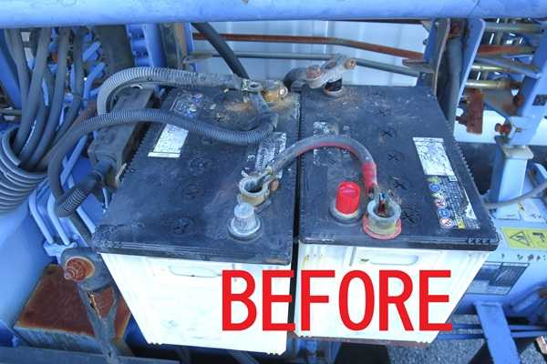 先日はバッテリー交換をした。自分の車ではなく仕事で使っているトラックのバッテリー交換だ。僕は週に何日かこのトラックを使っているのだが見回りと称して夕焼けを見にドライブしているということは内緒だ。これを読んだ人が会社にチクらないことを願うばかりである。先日エンジンをかけようとしたらバッテリーがあがっていた。というわけで新品のバッテリーに交換。整備専門の人に「交換しましょうか?」と言われたが「バッテリー交換なんてお茶の子さいさい(死語)ですよ」と答えて自分で交換したのだが結構苦労した。ちなみに家に帰ってから”お茶の子さいさい”を検索してみたが特別「へえ~!」ってほどでもなかったので語源はもう忘れた。バッテリー交換で苦労したのは下の画像のようになっていたからだ。ターミナル端子のネジが腐ってねじ切れちゃったのだ。それでもなんだかんだがんばって無事交換完了。バッテリーは腐る前に交換しましょうね。