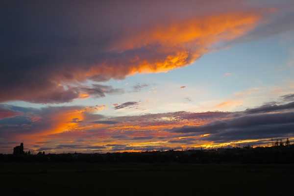 今日は中古車の内装撮影の仕事も楽だったし4時頃には晴れてるのに虹も見たし夕方には綺麗な夕焼けも見れた。しかし日没時間も早くなったなあ。今なんか夕方6時10分頃が夕焼けのピークだもんなあ。ズームで撮ったら色んな色が混じった夕焼け雲だった。