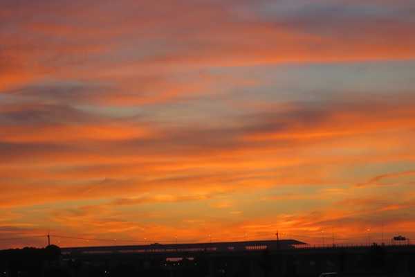 今日の夕焼けは素晴らしかった。僕の職場は360度の空が見渡せるという環境なので毎日夕方になると西の空ばっか見ている。夕焼けがきれいな時は仕事どころではないのである。(てか、あなたは朝から晩まで仕事そっちのけですね~会社の声)秋の空だった。風も心地良かった。こんなすごい夕焼けが見れたから今日の給料なんか要らないぐらいだ。(あんたは要らんって言ってもアタシは欲しいわい!~妻の声)毎日夕方になるとセントレアに着陸する飛行機の雲が太陽に照らされてまるで巨大彗星の尾のように見える。上空に水蒸気が多い日は、朝10時過ぎの離陸ラッシュ時と夕方の着陸ラッシュ時は幾筋もの飛行機雲が出来てそれらは幅広く広がって薄雲を形成するほどだ。それにしても今日の夕焼けは震えるぐらいすごかった。こんな景色を地球の最果ての地で見てみたい。たとえば沖縄の離島、或いはネパールの奥地で。