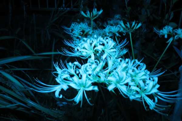我が家の庭の隅にはクリーム色の彼岸花が咲いている。10年近く前に職場の撮影スタジオのお姉さまから貰った花だ。暗い時間に庭に出てLEDライトで照らして撮ったら妖しく撮れた。このLEDライトは商品撮影用兼夜間登山用として買ったのだが実質84円で買ったのである。照明の色が色々変えれて、この写真は白~水色にして撮ったもの。