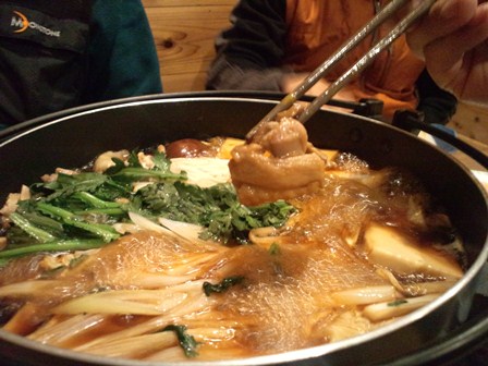 去年ワカサギ釣りにいったときに寄ったお店。食事ができなくて卵を買いに行ったのですが、卵を買った記憶はあるが、それがおいしかったかどうかが覚えていない…。いや、おいしかったんだろうな。そんなわけで、今回はリベンジってことで予約までして行ってみました「中村農場」さん。頼んだのは「水炊き」「とりすき」「から揚げ」「厚焼き玉子」「焼き鳥」などなど。そうですねー。おいしかったです。上の写真のとりすきが秀逸だったかな?食べるときに使う卵がなんかすごかった。混ざらないんだもん。水炊きのときの雑炊もおいしかったですねぇ。コラーゲン!って感じですし。からあげもおいしかったし。全体的にとっても満足度が高かったです。場所があんなところになけりゃねー。それにしても…。さきほどウチのあいぽんちゃん(3GS)の顔にひびが…。電話としては使えるけどさすがになぁ…。買い替えるべきか、それともIS12Tに一本化すべきか…。なやむぜ。っていうか一本化したほうがいいんでね???