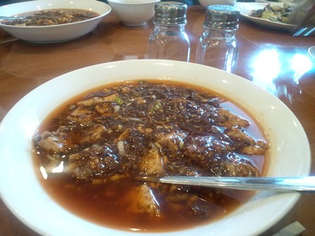 先日先輩とお昼に伊豆に向かう136号線沿いの「天鳳」さんという中華屋さんに行ってきました。ちなみにお昼です。先輩と行ったらなぜか食材調達人さんがいらっしゃいまして「どんだけ世の中せまいねん」って話になりまして、一緒に食べました。先輩曰く、陳健一さんところで修行された方がやっておられます。というわけで、陳麻婆豆腐のランチです。うまい!すごく辛いわけではないけどうまい!!汗が噴き出るけど、そんなに辛くない!四川麻婆を食べたらどうなるかわかんないけどうまい!ご飯が止まりませぬな。最初はそのままご飯に乗せて食べて、そのあとは花椒を適度に大量投入してシビレる舌を楽しみました。いやー、おいしいなー。っていうか、書いてて食べたくなってきた。こんどディナーで食べたいなー。誰かに車を運転してもらって。ご馳走様でしたー。