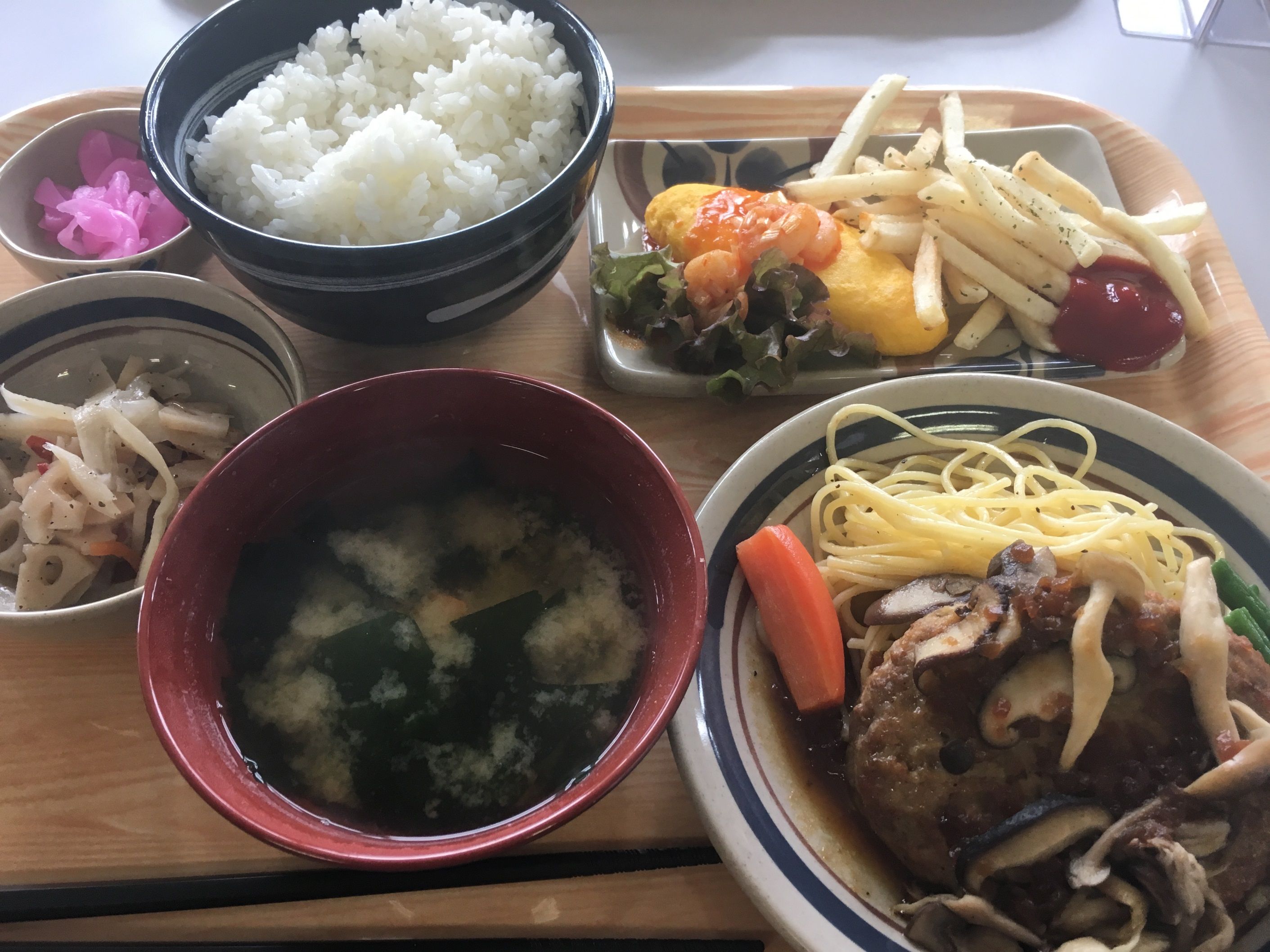 もうだいぶ前の話ですが、某お仕事で某所におりました。朝から余裕で行くつもりが何気に足立区が遠くて、始発で行ってやっとというところにある某所でした。お仕事してお昼になったのですが、お客様から「社食でお昼食べる?」とお誘いをいただきまして、これ幸いといただくことに。確か日替わり系だったと思うのですけど、和風きのこハンバーグ、オムレツ&ポテト、お味噌汁、小鉢、どんぶりめし、漬物というラインナップ。いままで見たことはあったけど食べたことはなかったので貴重な体験をさせていただきました。社食は男の人ばっかりでどっちかというと男の職場って感じです。けど、女性の方も若干いらっしゃっていて(といっても一人でしたけど)めずらかしい。その子もどんぶり飯を食べていたのでカロリー使う職場なのね。お味は美味しかったですよ。たしか480円くらいだったような。うーん、金額の正確なの間では覚えていない~。ごちそうさまでした。