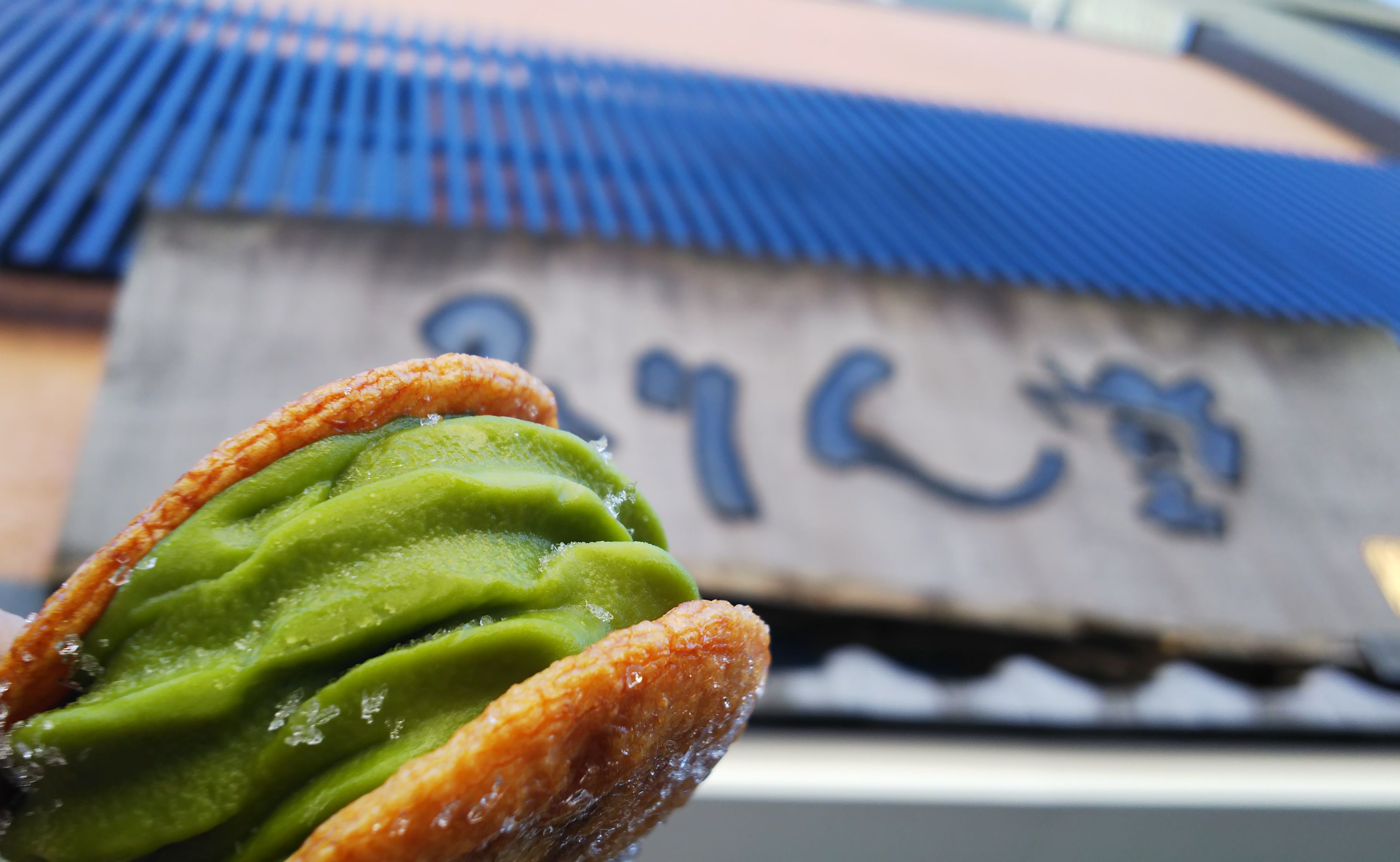 押上からふらふら歩いていると「みりん堂」さんというせんべいやさんを発見!よく見ると「ぬれそふと」というのが売ってるとのこと。ぬれせんべいにソフトクリームが挟まれているものです。おもしろそうだったので購入。ちなみに東京大雪の週末で歩道には根雪が…。ソフトクリームは普通のと抹茶のとを選べるので抹茶を選んでみたのです。おいしかったけど寒かったのと、作り立てじゃなくて冷凍保存?されものなので抹茶が硬い。気温が低くて柔らかくなりにくい…。そして、寒い(2回言った)