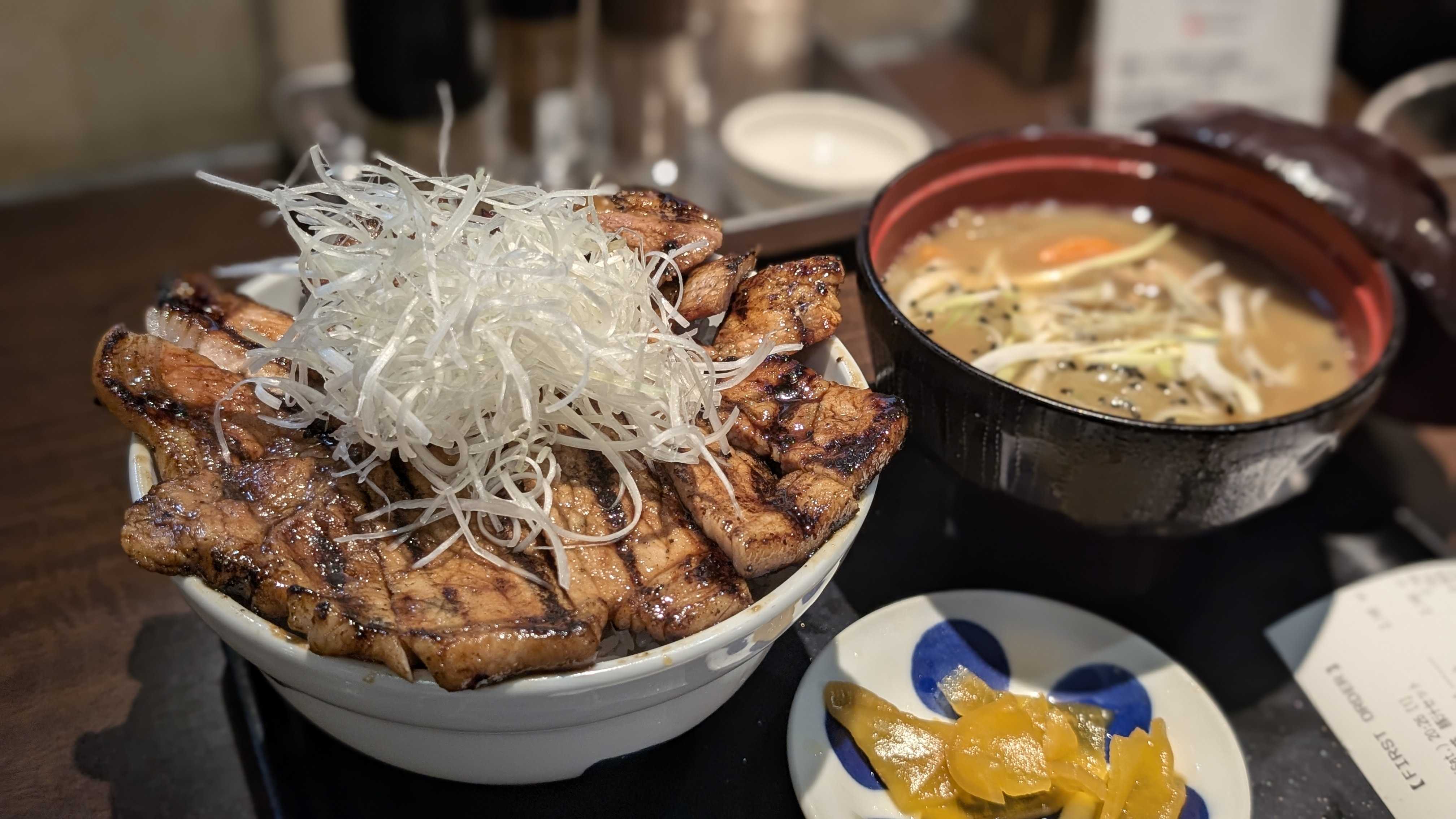 とある日、平塚の映画館に行ってみたのです。その前にTOHOシネマズ小田原にも行ったのですけど。それは後で書こうということで。朝イチで小田原で映画見て、そっからウニャウニャして、パンを買ったり、ジェラードを食べたり、平塚の球技場近くのスーパー銭湯行ったら人が多すぎて気持ち悪くなって写真を1枚も残していなかったり。なぜかというと平塚の映画館で見たかったのが21時30分すぎの上映で23時50分くらいの終了というオニ仕様。なのでせっかくだからと神奈川県西部を満喫したわけです。湘南エリアのフリーペーパー?雑誌?を持って旅に出たわけで、それを元に色々行ったのですけど、夕食の段になって、行きたかった店が悉くやってない。お風呂でゆっくりしすぎた?いやいや、そんなにいなかったのに(実際はお風呂じゃなくて休憩スペースで本読んでた)ってなわけで、行ったことのある店でやってそうなところってことで「なまらうまいっしょ! 平塚駅北口店」さんに行きました。なぜか神奈川県にある豚丼のお店。オーダーしたのはロースの豚丼と豚汁。十勝で食べた豚丼は美味かったなぁと思いつつも美味しくいただきました。北海道もそろそろ行きたいっすね。うまうま。-------------#狂躁的非日常と日常#あきらっく#ささだあきら#神奈川県#平塚市#なまらうまいっしょ! 平塚駅北口店#豚丼-------------