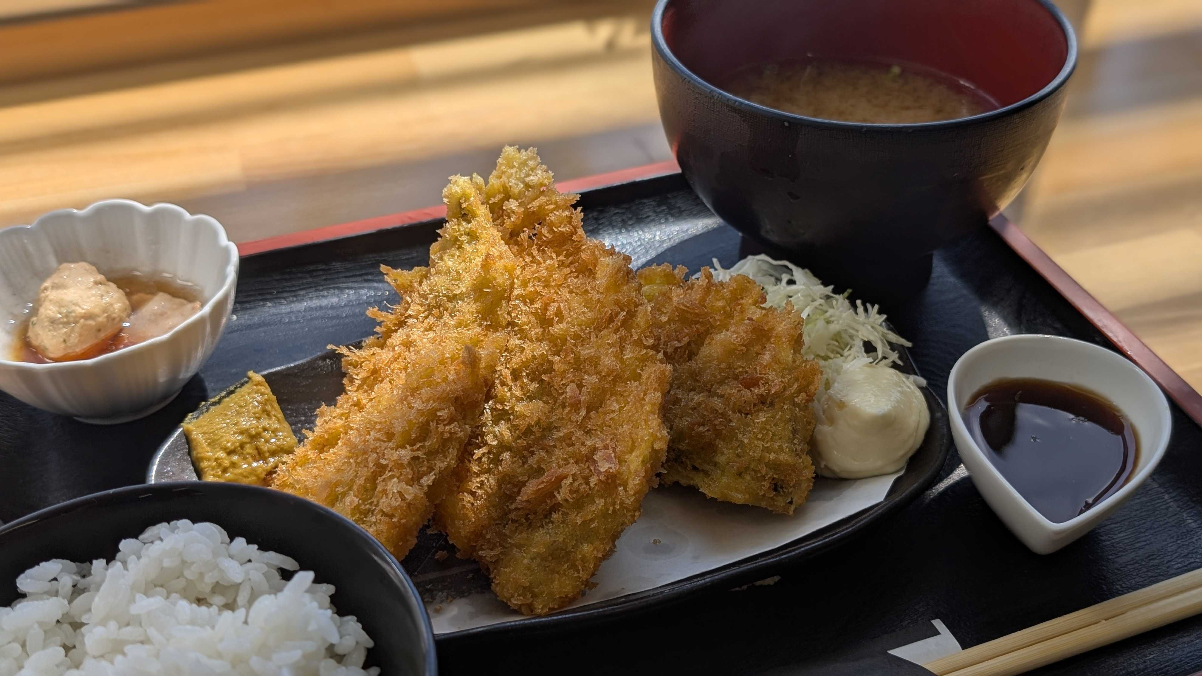 とある日、清水に朝からおったあきらっく。せっかくだからと朝食が食べれるのかよくわからなかったんですけど、『魚市場食堂』に行きました。本当はお隣にある『河岸の市』さんに行ったのですけど、こちらはお店がやってない時間だったので入れなさそう。お隣にある、『魚市場食堂』は営業されているお店が複数ありました。その中で「漁師めし岸家」さんに行きました。理由はなんとなく海鮮丼とかは食べたくなかったので、ほかないかなーって思ってたらちょうどおすすめでアジフライがあるっていうことで入ってみたのです。そしたら基本的には単品(2枚)でのオーダーだったらしいのですけど、他のを食べる気がなかったので3枚にしてもらうことでご飯とお味噌汁をつけてもらって定食にしてもらいました。衣が厚めではあるんですけど、ホクホクのアジがうまうまでございました。ただ、アジフライ定食をオーダーできちゃったせいで、他のお客さんもアジフライ定食を頼まれる方がいたのでちょっと申し訳なかったです。なぜって?海鮮丼より単価が安いからw-------------#狂躁的非日常と日常#あきらっく#ささだあきら#静岡県#静岡市#清水区#魚市場食堂#漁師めし岸家#アジフライ定食#アジフライ-------------
