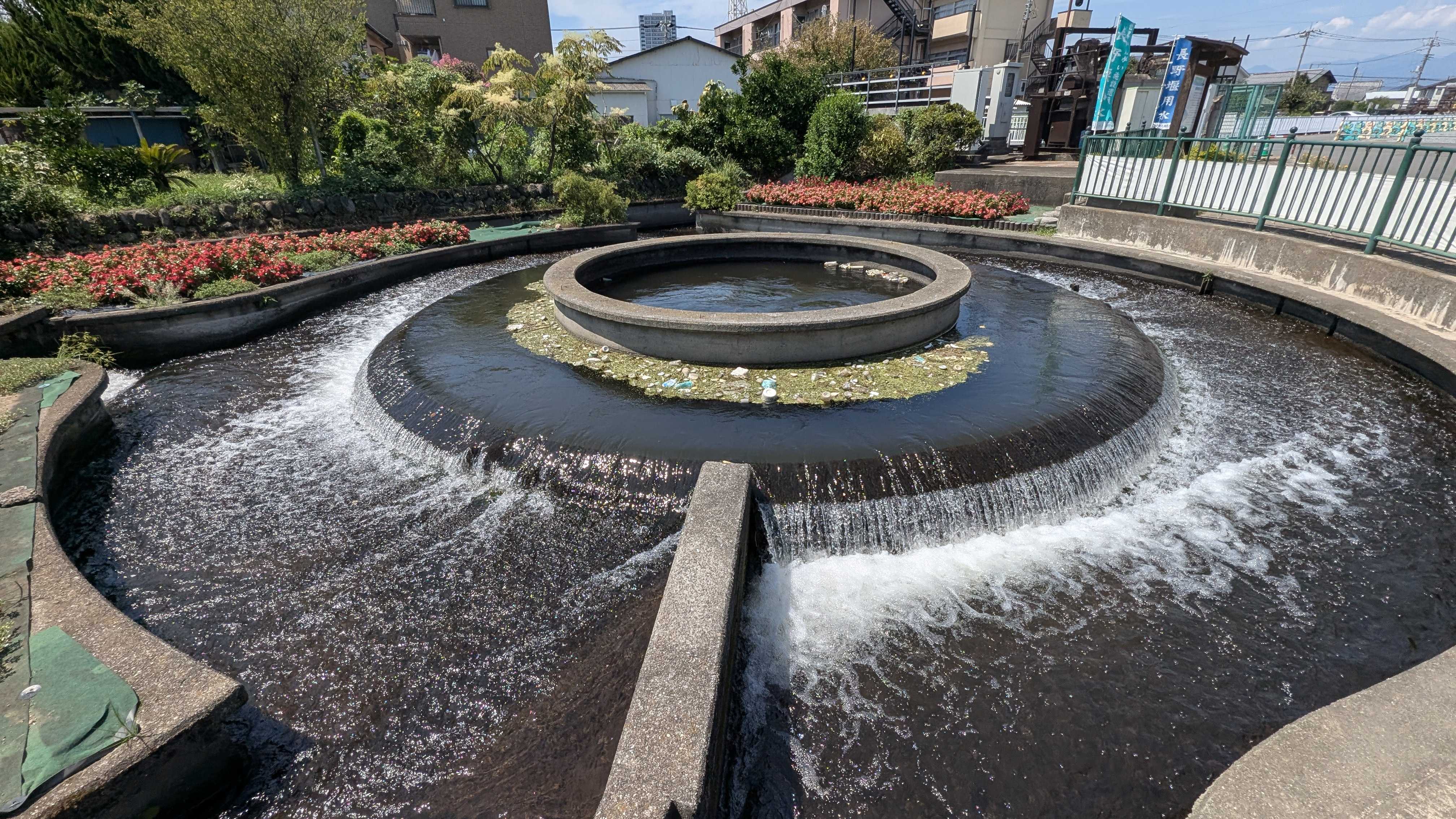 「長野堰 円筒分水堰」は群馬県高崎市の高崎駅からも程近いところにある円筒分水です。群馬県近代美術館からバスで高崎駅に行きまして、そっから歩いて東の方?に向かうとあります。暑くて死にそうですけど、歩いて行ける距離にあるので頑張って歩きます。とか言いながら、リュックは高崎駅のコインロッカーに入れました。こちらは公園として整備されていて、案内看板もしっかりあります。その中に、石碑があるんですけどそこには恐ろしや 地獄の関と思いしが 悟ればここぞ極楽の堰って書かれてて、なんか怖い。昔々の水利権で揉めまくったんだろうなというのが偲ばれます。長野堰用水は、古くは室町時代より農業や市民生活に利用され、高崎市の発展の礎として大きく貢献している施設です。高崎の街や水田地帯は2つの自然河川に挟まれていながら、その台地状の地形から水の恩恵を受けにくい地域でした。水利に乏しいこの地域を潤すために長野堰用水の開削が始まったのは、約1100年前と言われています。1814年にはサイホンを新設して、榛名白川を横断したという記録が残っており、当時から高い土木技術と知識があったことが明らかになっています。また、1901年に建てられた、長野堰用水を開削した先人の労をねぎらう石碑には「本堰烏川の水を引き、獲るところの稲の量は五万石に満ち、また、これを飲みて生ける民は高崎を始めおよそ十万人に余る」と刻まれています。このことからも、古くから農業の発展のみならず、市民の生活を大きく支えてきた施設であることがわかります。現在では一級河川烏川から最大5.787トン/秒を取水し、幹線水路は15箇所の水門で分水しながら、8.6キロメートル下流の円筒分水堰でさらに4支線に分岐しています。この分岐した4支線の延長は17.1キロメートルで、現在も340ヘクタールの水田を潤しています。っていう感じですって。河川の土砂が堆積してできた平地なので、それが過ぎると川が土地を削り出して台地になるんでしょうね。そうすると水を持ってきにくくなる。そこで上流で堰を作って水を流すことになります。そこをきっちりかっちり分水するためにこの円筒分水があります。サイフォン式で下から水を上げて分水していくのは見てて飽きないですねぇ。問題は死ぬほど暑いってことなんですけど。にしても円筒分水堰だの円筒分水工だの円筒分水だのいまいちわからん。-------------#狂躁的非日常と日常#あきらっく#ささだあきら#群馬県#高崎市#長野堰#円筒分水堰#円筒分水-------------